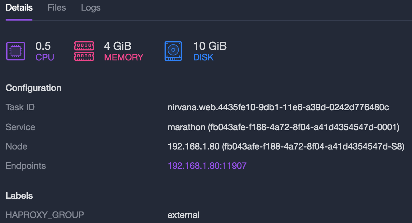 Tomcat服务在DCOS中部署后,查看其中的一个服务实例: